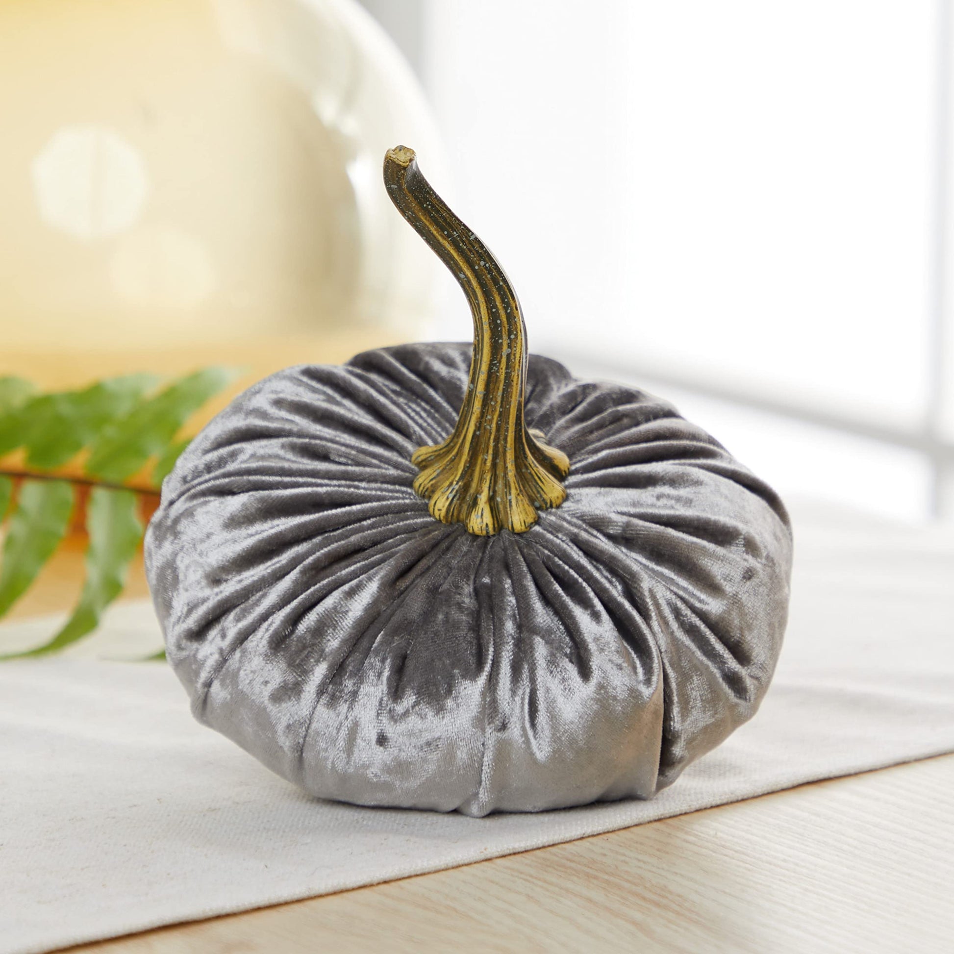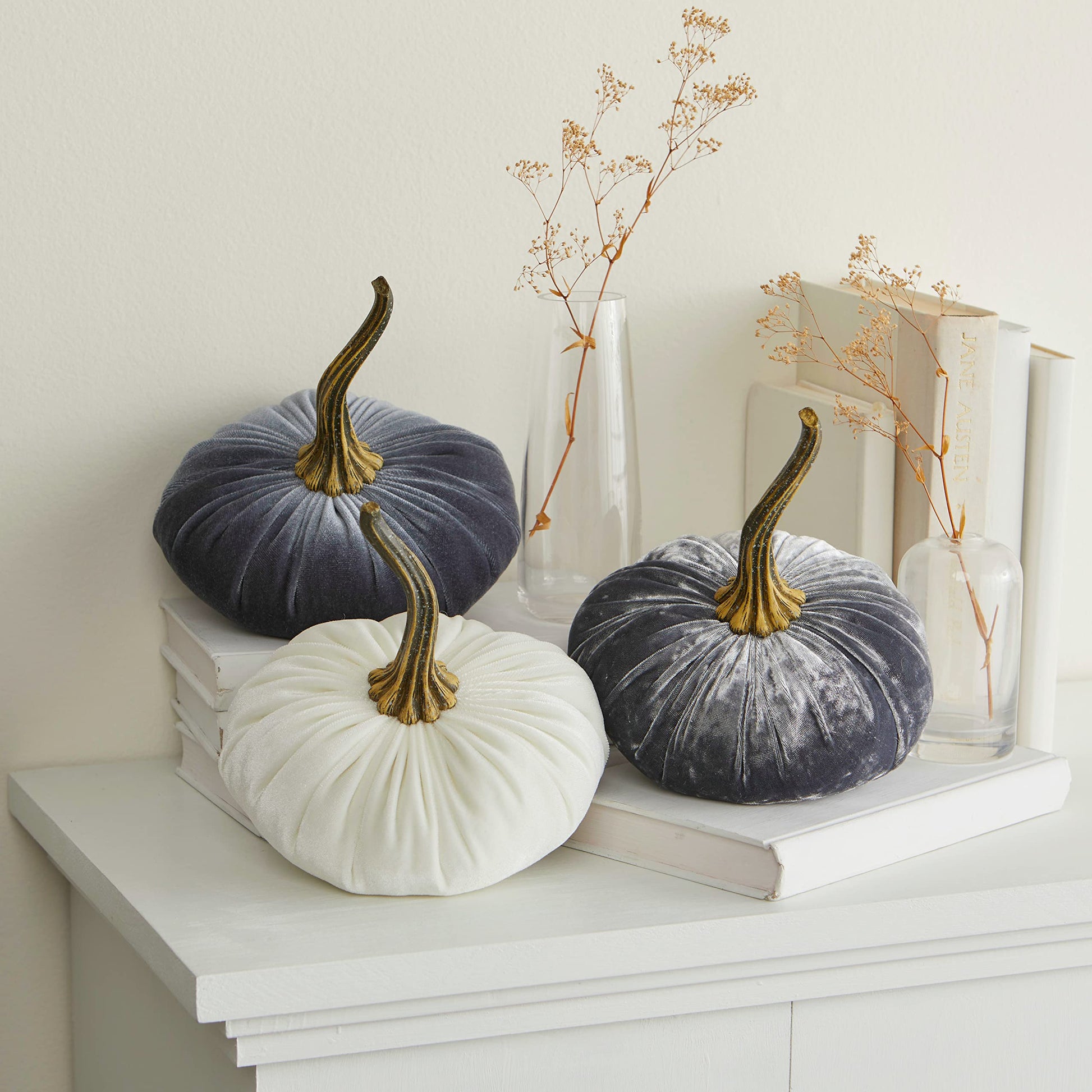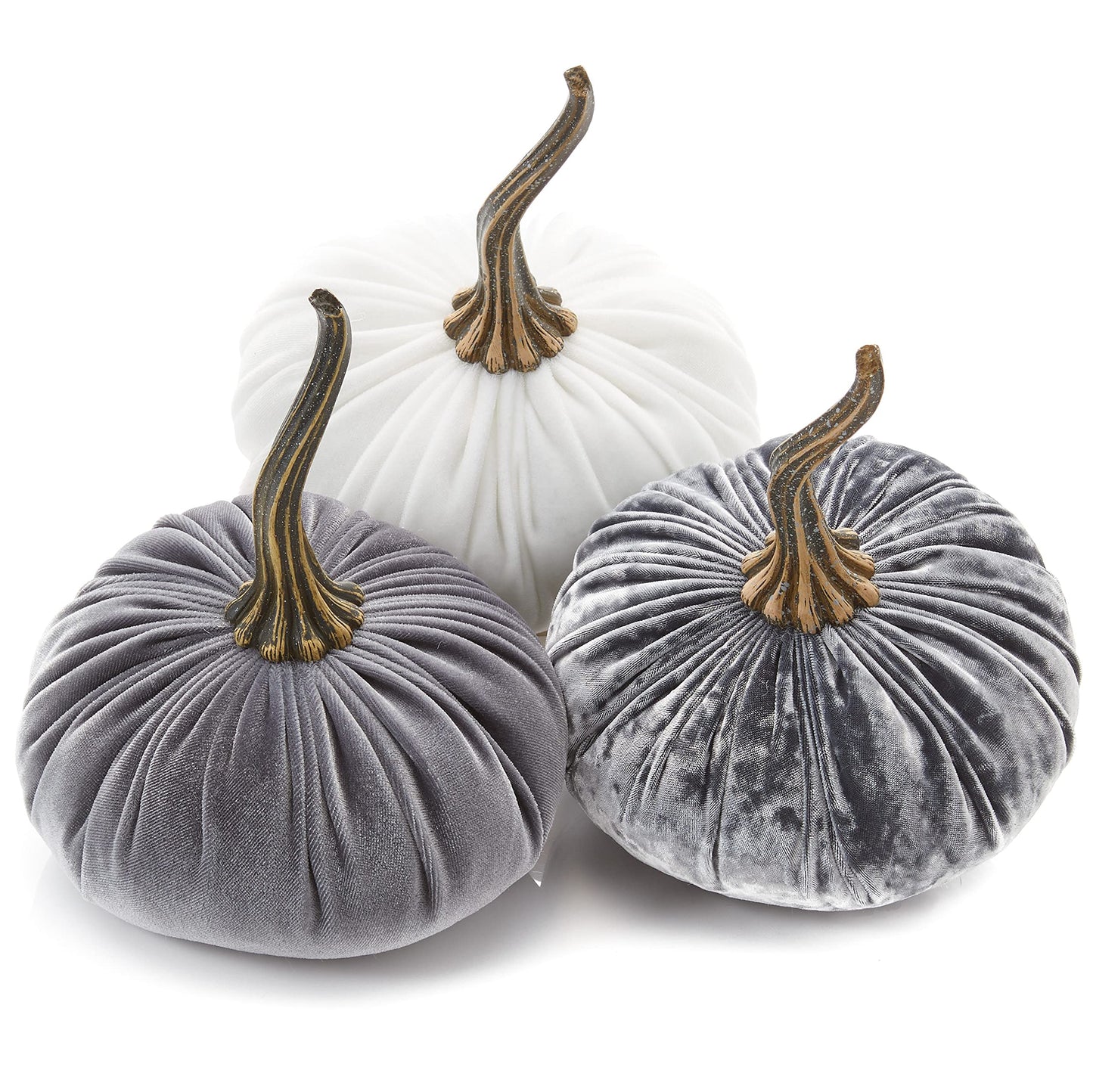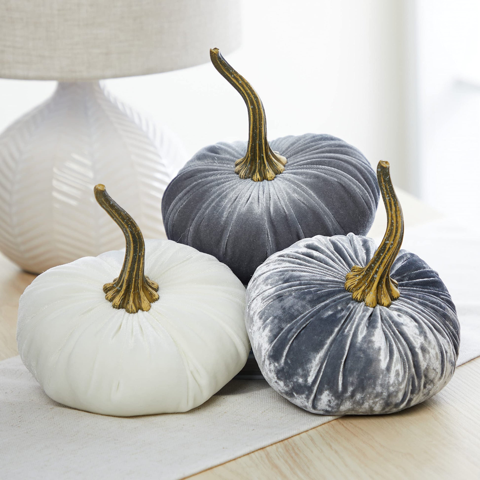 Set of 3 Velvet 6.25 Inch Pumpkins, Holiday Mantle Decor, Fall Thanksgiving, Rustic Fall Wedding Centerpiece Decor, Neutral Decor, Gift for Her (Gray, Ivory, Platinum)